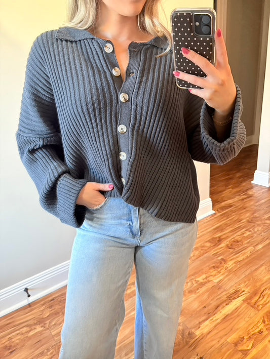 Navy Collar Cardigan